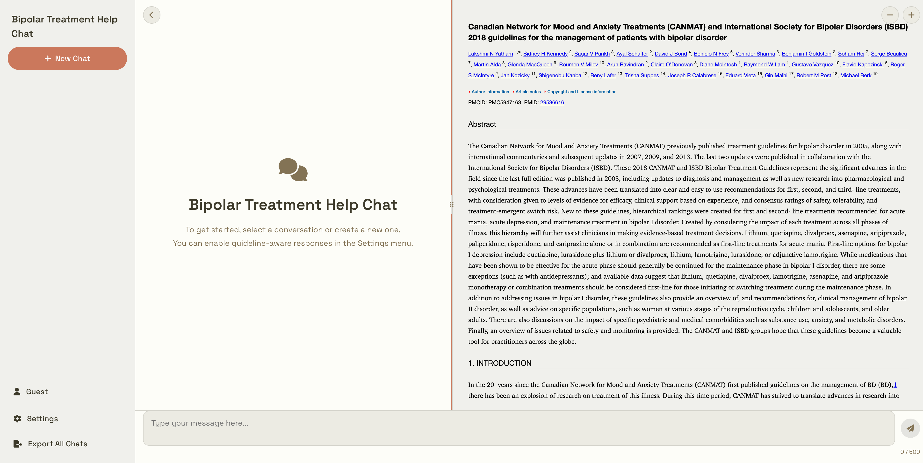 Bringing safe and interpretable AI into medicine. We build software that ingests medical guidelines and delivers evidence-based recommendations through natural language interfaces. Our work combines computer science, medical, and clinical research. We collaborate with UBC’s Cloud Innovation Centre for certain projects. Current projects include agentic NLP pipelines with UIs hosted on AWS for Bipolar Disorder and Depression. Supervised by Dr. John Jose Nunez.