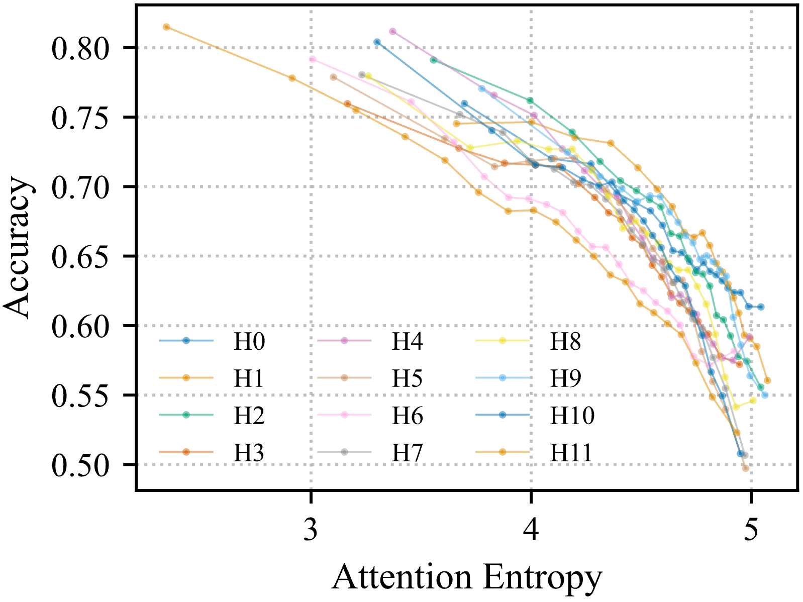 We minimize the entropy of CLS-to-patch attention in the final layer as a novel TTA loss, encouraging the model to maintain focused attention on shifted data. We demonstrate that attention entropy minimization improves robustness on ImageNet-C. We also show that it is complementary to output entropy minimization and maintains performance on clean data. Preprint here and code coming soon!